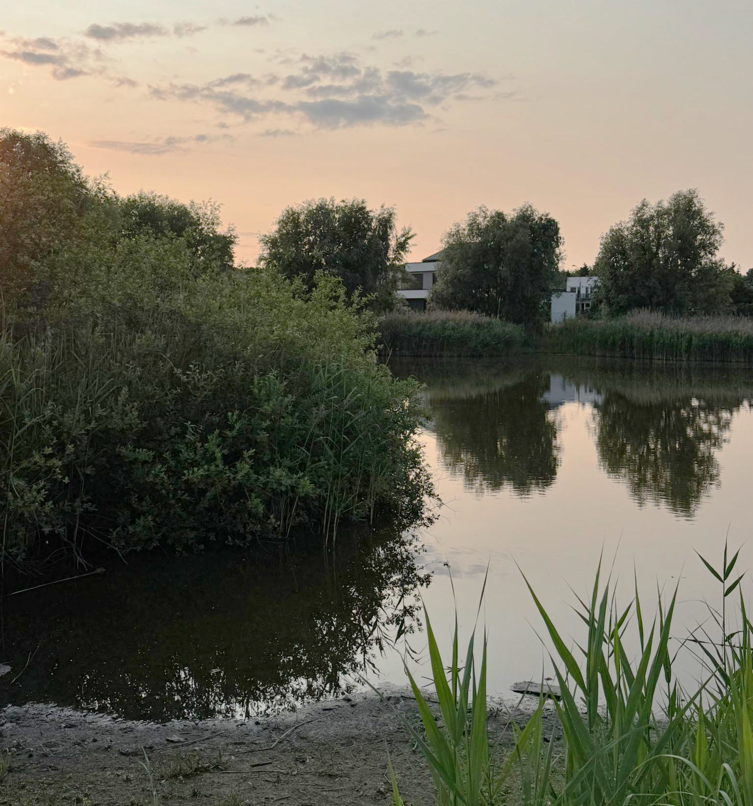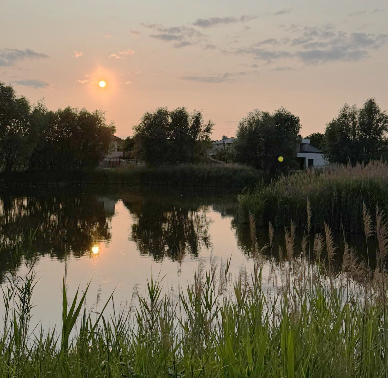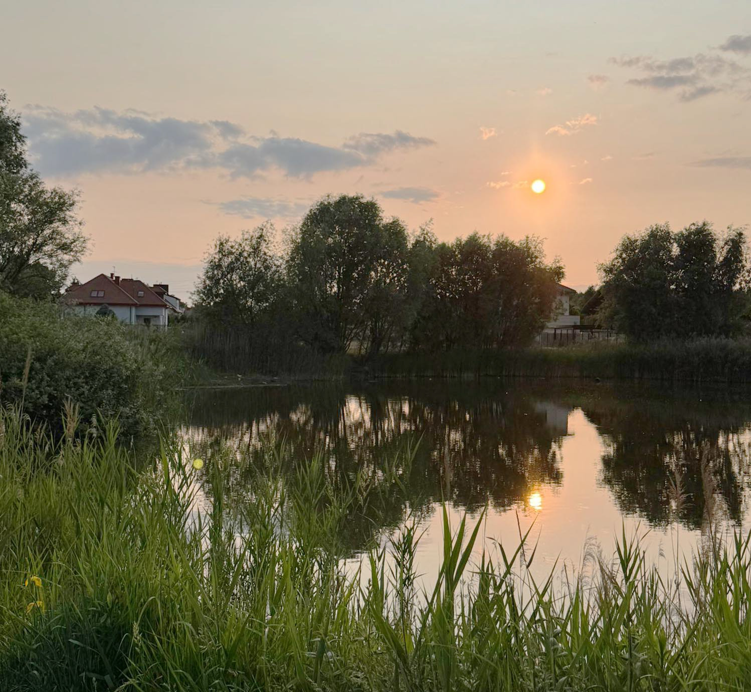 Zachód słońca nad stawem leżącym w sercu osiedla Rezydencje Blizne